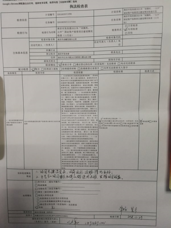 南京市发改委“双随机、一公开”项目(固定资产投资项目节能审查)抽查表公示